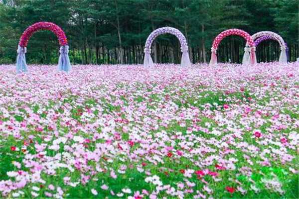 紫溪半岛花海世界位于西枝江附近,进门就是一整片的五彩花海,可以各种拍照,而且景区内有网红打卡景点魔女自行车,是由自行车改造的,在抖音上也是比较火的,很多人去打卡。