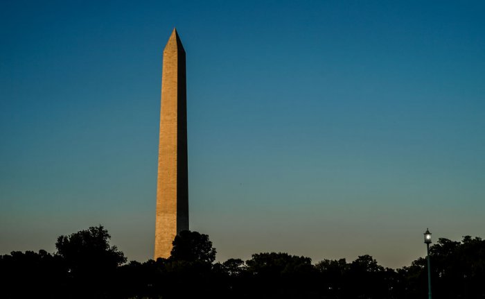 华盛顿纪念碑是为美国总统乔治·华盛顿而建造的,是世界上最高的石制建筑,石碑是以白色大理石建成方尖型,高度是169.3米,东面是国会大厦,西部是林肯纪念堂,北面是白宫,南面是杰佛逊纪念堂,内墙镶嵌著188块由全球各地捐赠的纪念石。美国政府于1899年宣布:“华盛顿特区任何建筑物的高度都不可以超过华盛顿纪念碑”。