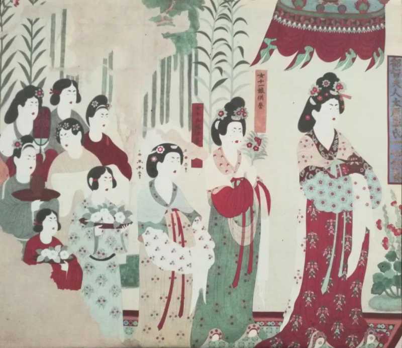 而《唐宫夜宴》的创作灵感来自1959年河南安阳张盛墓出土的隋代乐舞俑,一组13件,包括8件乐俑和5件舞俑。