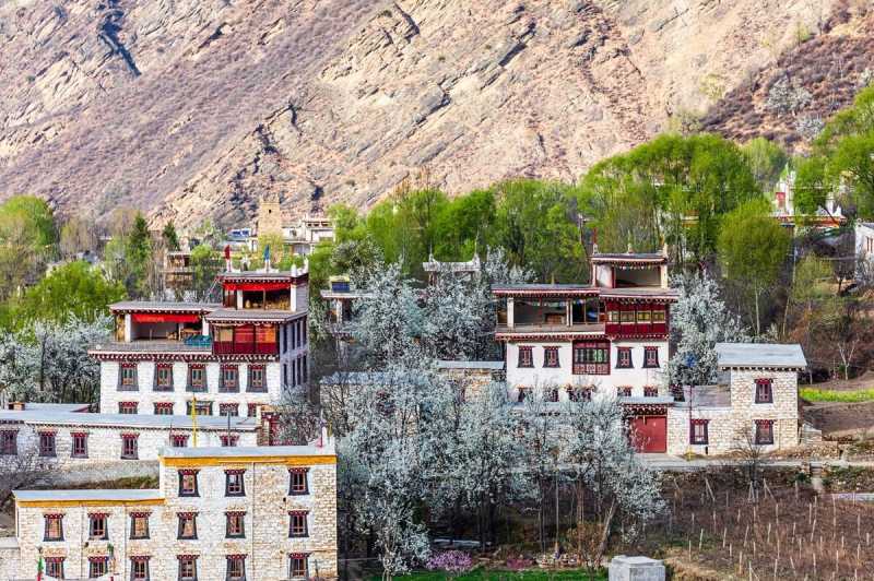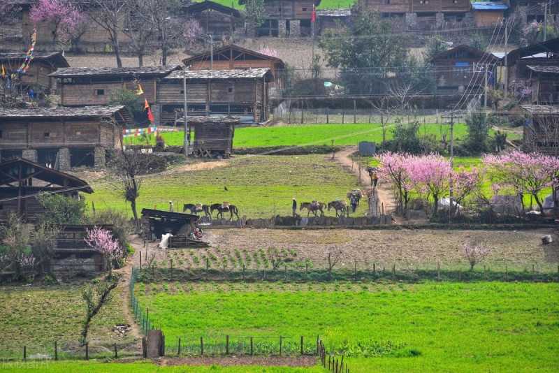 每年桃花盛开之时,嘎拉村推门即见桃花,