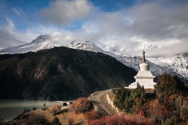 周围遍布美丽的湖泊和宏伟的雪峰。
