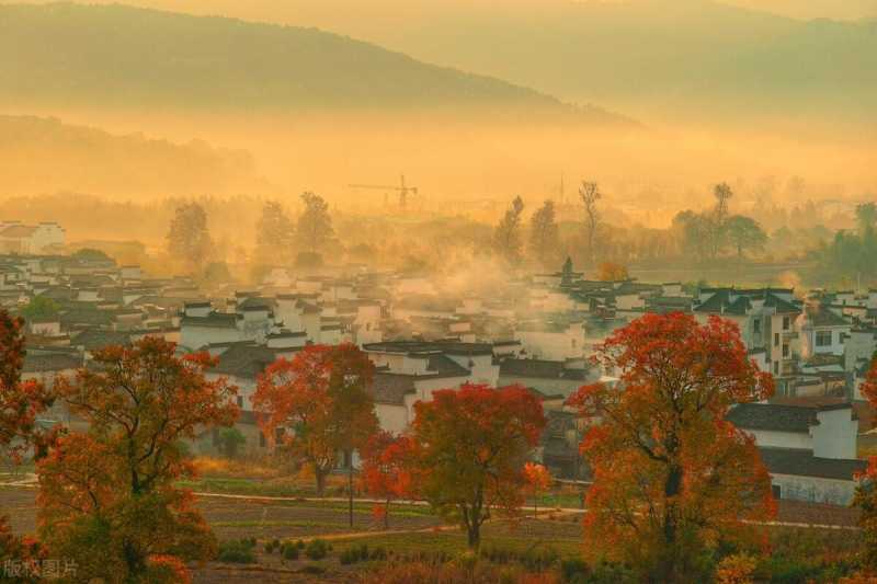 清晨,村庄在几缕薄雾中拉开了序幕,