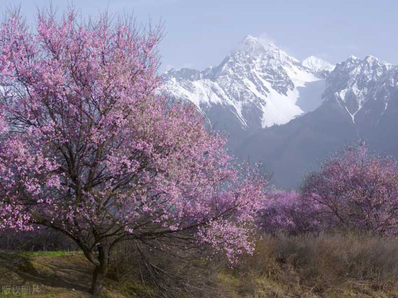 看318国道沿途雪山与桃花交相辉映,