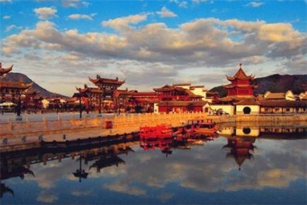 横店华夏文化园是金华一处非常受欢迎的风景名胜区,该景点的位置位于浙江省金华市东阳市横店镇的华夏大道上,这座文化园建造在湖泊之上,湖光倒映着长廊,分外的好看。