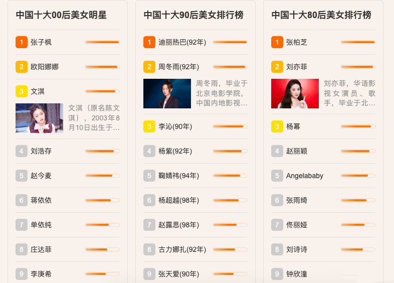 - 娱乐圈十大美女明星颜值排行榜:许晴垫底,榜首无人不服