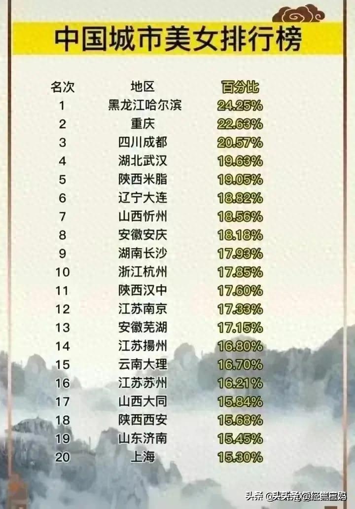 终于有人把中国城市美女排行榜整理出来了,看看是你那里吗?