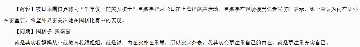 原文刊载于中国新闻网2019-12-13关于“美女棋手黑嘉嘉:希望外界更关注我的围棋成绩”