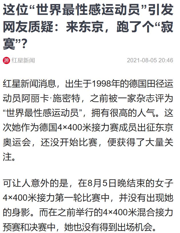 原文刊载于红星新闻2021-08-05关于“这位“世界最性感运动员”引发网友质疑:来东京,跑了个“寂寞”?”