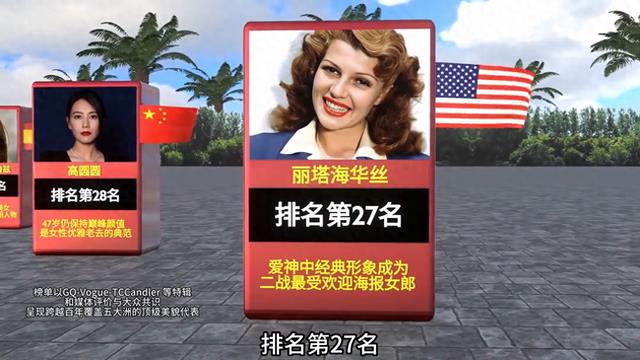 ·这是美国的演员丽塔海华斯,排名第二十七名。