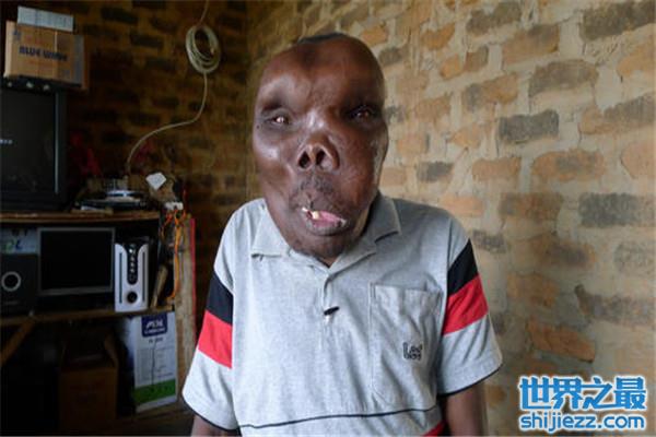 这位名叫Geoffrey的男子来自非洲的乌干达,独特的外貌给他带来了很多的财富。Godfrey不知道是患上了什么病,所以才会变成这样,刚开始Godfrey还只是一个鞋匠在努力维持生计,但是后来经常会以世界上最丑的人的身份出席活动,他因为获得很多的演出机会而经常被邀请上演,他娶了老婆,还有8个孩子。