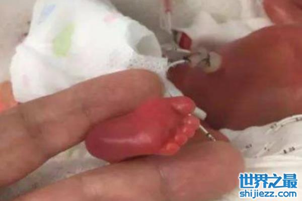但遗憾的是,推迟早产的措施失败了,医生只好无奈之下给阿米莉娅的母亲进行了剖腹产,而当时阿米莉娅才在妈妈的肚子里怀了21个星期零6天而已,所以当时阿米莉娅出生后仅仅只用一只手就能托住,整体的长度仅圆珠笔的大小,而相比于世界上最重的女婴来说,她的体重实在难以想象,存活下来简直是个奇迹。