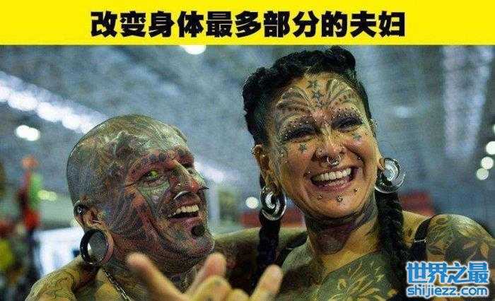 很多时候,人们可能因为共同的爱好走在一起,甚至成为了夫妻。而阿根廷有一对很特别的夫妇,就是加布里埃拉和维克多·佩拉尔塔这样一对夫妇。他们都非常热爱对身体进行纹身和穿孔等改造。他们的结合创造了一项吉尼斯世界纪录:世界上最多身体改造的夫妇。他们对身体的改变覆盖率达到了90%。