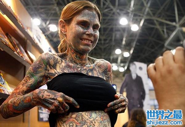 8、朱莉娅·格努斯(世界上纹身最多的女性)
