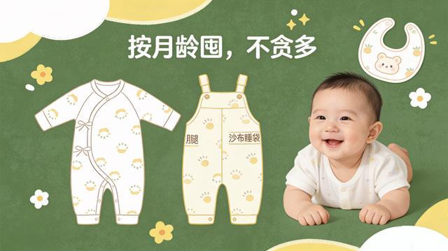 3. 提前囤大尺码:0-6个月宝宝长势快,按“当前月龄+1”囤,囤大了穿不着易闲置,还浪费钱。