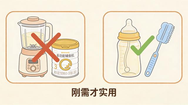 1. 多功能辅食机:单一搅拌机/破壁机足矣,多功能款贵且清洗繁琐,辅食后期基本闲置吃灰;