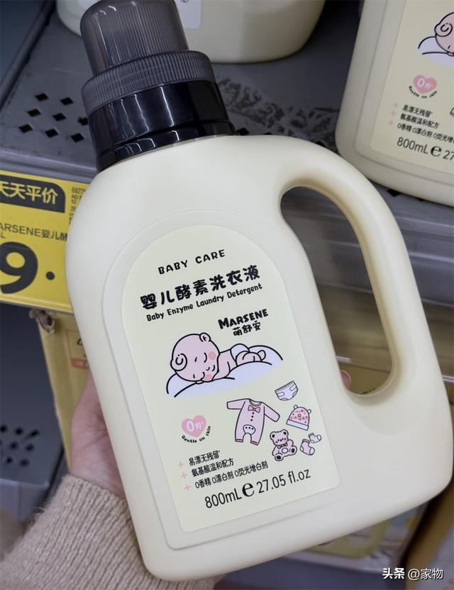 和刚才的果蔬清洁剂是一个品牌系列,同样主打一个便宜的同时,清洁能力还特别强,0香精、0漂白剂、0荧光增白剂,我试了试用小洗衣机20分钟快洗,再放入清水里也是干干净净,很好用。