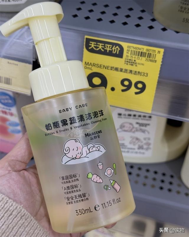 而这果蔬清洁泡沫,则是专门用来清洁奶瓶的,且你猜这一大瓶多少钱?才九块九,我是真佩服沃尔玛,这也算是降到底了。