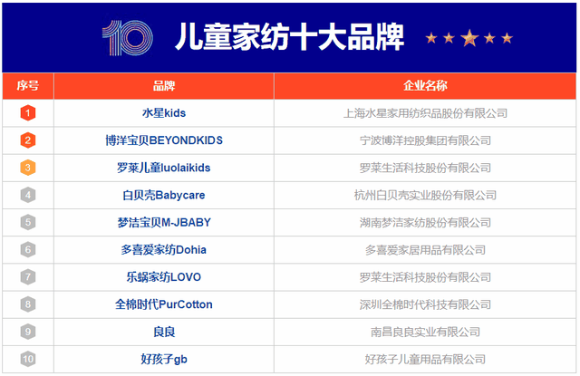 在日常生活中,家长若给孩子挑选床上用品,一定要综合多方面考虑,对于每一个物件都要好好查看过,以保证宝宝的健康和宝宝的睡眠质量。那么儿童家纺什么牌子好?下面,小编为大家分享儿童家纺十大品牌排行榜,包括水星kids、博洋宝贝BEYONDKIDS、罗莱儿童luolaikids、白贝壳Babycare、梦洁宝贝M-JBABY、多喜爱家纺Dohia、乐蜗家纺LOVO、全棉时代PurCotton、良良、好孩子gb等。该榜单由CNPP品牌榜中榜大数据研究院和CN10排排榜技术研究院专业测评而得出,排名不分先后,仅供借鉴参考。
