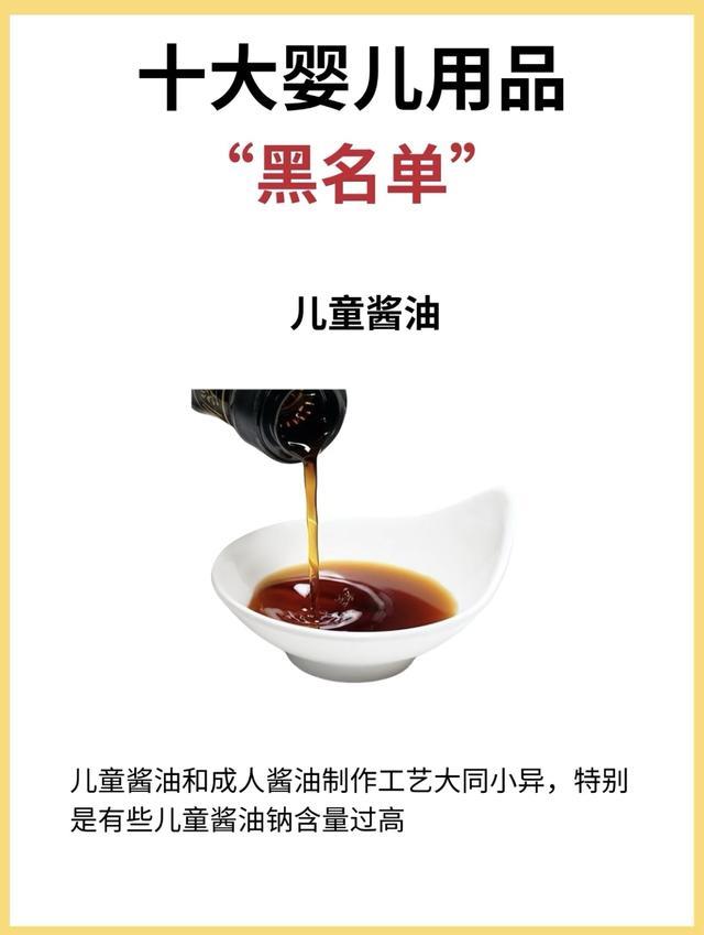 另外,像婴儿游泳脖圈、带绳子的安抚奶嘴、分腿式睡袋(针对小月龄)、儿童酱油、风油精花露水等成人用品,也都存在这样那样的安全隐患或健康风险。比如脖圈可能损伤颈椎,带绳奶嘴有缠绕窒息风险,儿童酱油钠含量并不低,成人驱蚊止痒产品可能含有对宝宝神经系统有害的成分。