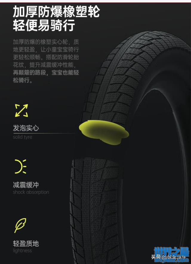 COOGHI酷骑儿童平衡车采用加厚防爆的橡塑实心轮,一体铸造,不仅质地轻盈,而且轮毂承重性更强,配搭防滑轮胎花纹,有效提升减振缓冲性能。而且有精密培林轴承加持,比传统滚珠轴承更加顺滑,哪怕路段颠簸也没关系。