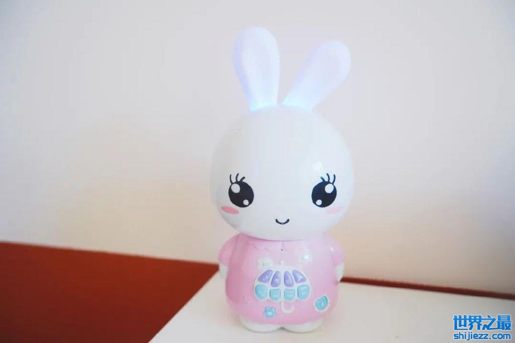 这个火火兔玩具咩咩也很喜欢,不仅会唱歌、讲故事,耳朵还会发光。