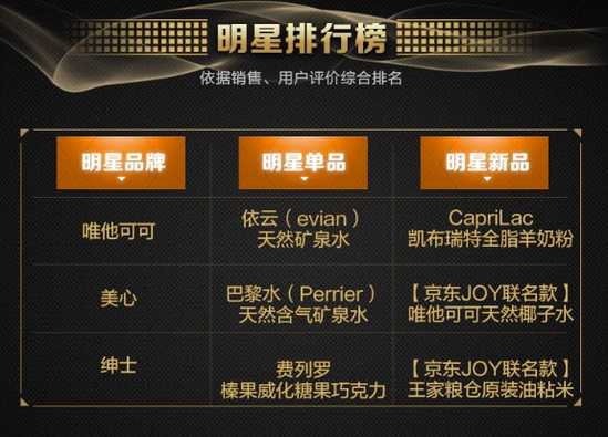 在进口商品明星排行榜中,入围商家有唯他可可、美心、绅士。