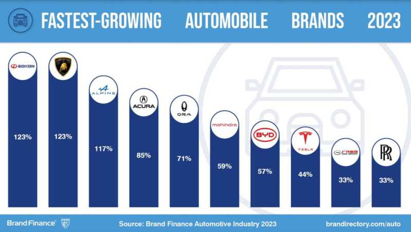 2023全球汽车品牌价值100强:特斯拉价值最高 赛力斯增速最快