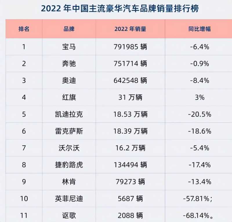 2022年豪华品牌销量前十,竟然只有一家增长,还是我们中国人的