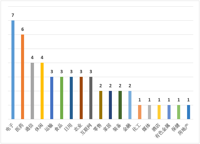 从行业企业数量来看,在2023新锐榜TOP50中,企业数量最多的是电子行业,有7家企业入围。入围企业数量3至6家的行业有8个,分别是医药、通信、休闲、运输、食品、日用、农业和互联网行业。其他行业入围企业均不超过2家。