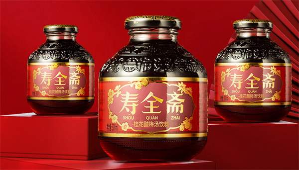 寿全斋桂花酸梅汤饮料挑选优质乌梅,口感酸甜,色泽均匀。在酸梅汤中调和糖桂花,科学合理配比,工艺讲究,味道酸甜可口,消暑解腻。
