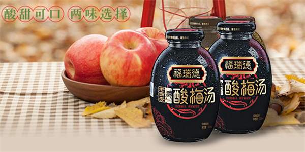 福瑞德酸梅汤饮料精选乌梅,配以山楂、陈皮、桂花、甘草、冰糖等原料,延续传统古法,经10几道工艺制成,保留食物原有风味。产品有老西安原味和桂花味两种口味可选,风味浓郁,味纯顺滑,酸甜爽口,解渴消暑,健胃消食。