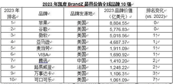 全球品牌TOP10榜单:美企独占8席,第一毫无悬念,腾讯成国产之光