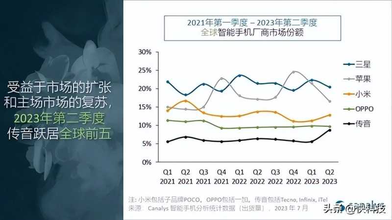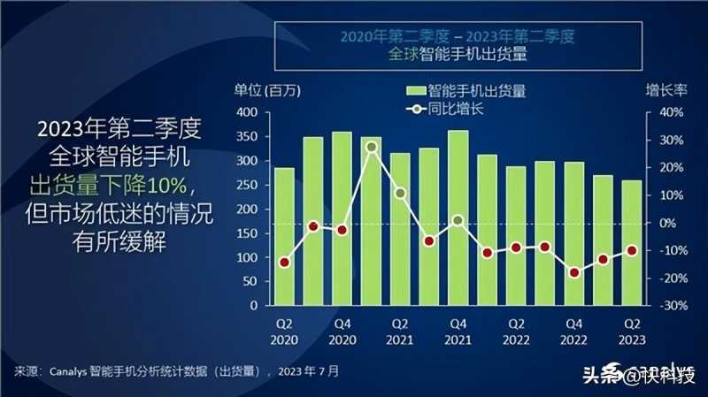 快科技7月27日消息, Canalys发布的数据报告显示,2023年第二季度,全球智能手机市场同比下降10%,达2.58亿部,市场衰退有所放缓。