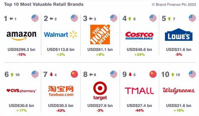 (快消品讯)近日,英国品牌评估机构“品牌金融”(Brand Finance)发布2023“全球零售品牌价值100强”排行榜(Retail 100 2023)。《快消品》摘录其中大快消相关零售品牌共81家。