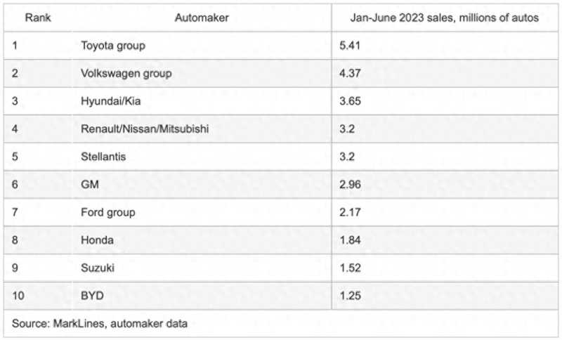 上半年全球10大汽车品牌销量榜:韩系世界第三,比亚迪入围前十!