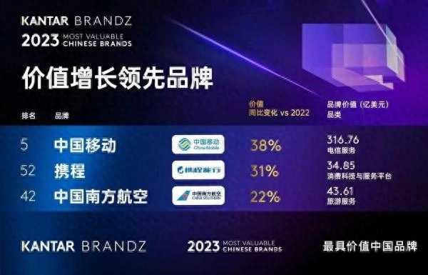 2023年BrandZ中国品牌百强公布,中国移动跃升至第五,位列央企品牌第一