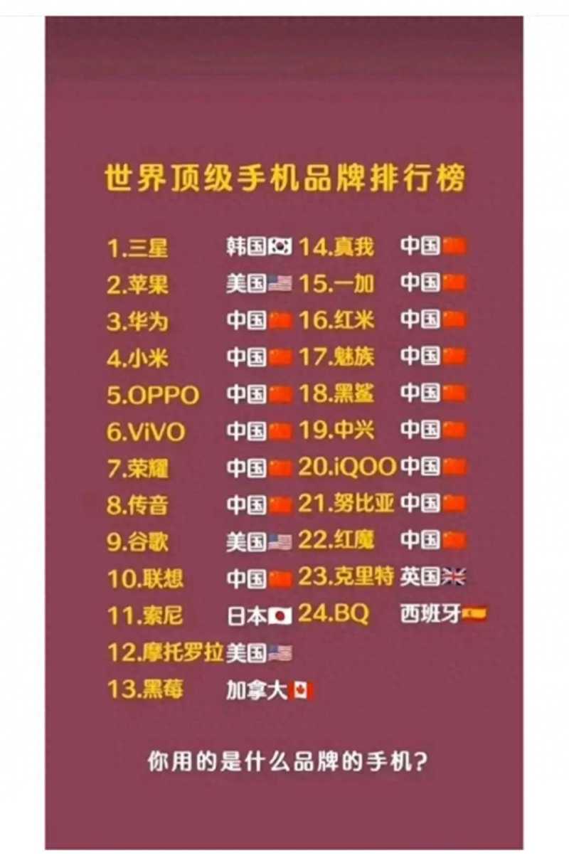 世界手机品牌排行榜!国产品牌越来越给力了 #手机 #数码科技 #华为 #苹果 #华为##支持华为,中华有为#