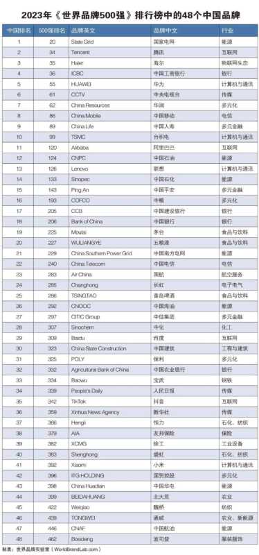 2023年世界品牌500强发布,中国品牌入选数首次超过日本,跃居全球第三