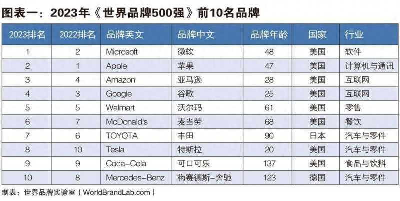 从前十名来看,去年排名第二的微软击败苹果位列第一;苹果退居第二;亚马逊名列第三。第四名至第十名分别为:谷歌、沃尔玛、麦当劳、丰田、特斯拉、可口可乐、梅赛德斯-奔驰。