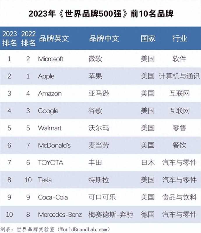 最新世界品牌500强:美国占193席,中国48品牌上榜跃居全球第三