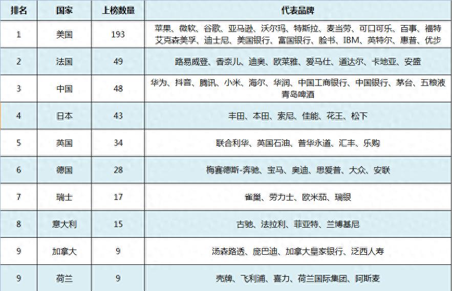《世界企业500强》体现的是一个国家的企业规模,而《世界品牌500强》则体现的是一个国家企业产品或服务的全球竞争力,两榜都靠前的国家,才是真正的世界经济强国。