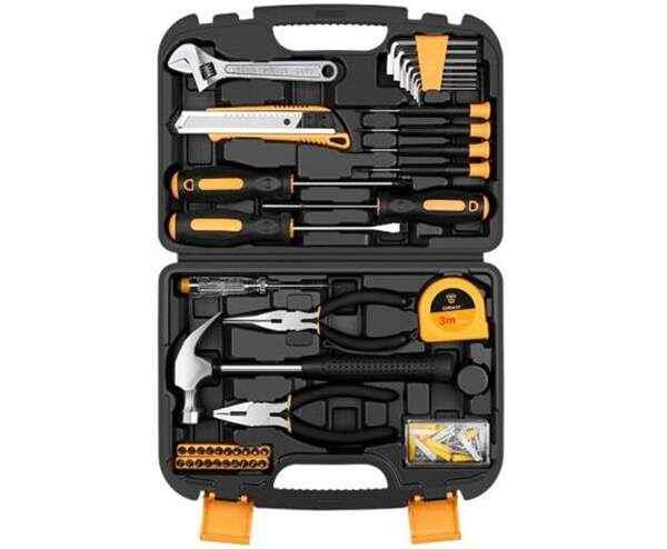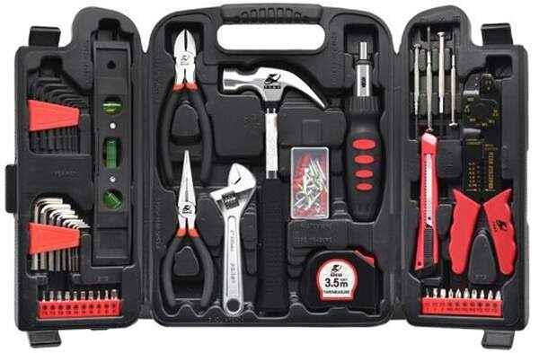 DEKO的多功能家用工具箱套装内含100件精心设计的工具,包括1/4英寸批头、各种扳手、螺丝刀、老虎钳、长鼻钳、美工刀、测电笔、羊角锤和卷尺等。这些工具均采用CR-V铬钒钢锻造,并配备强磁设计,确保强大的吸附力,让工作更加便捷。其卡槽式设计,让工具稳固地存放在工具箱内。这套工具还提供终身保修,品质保证,坚固耐用。