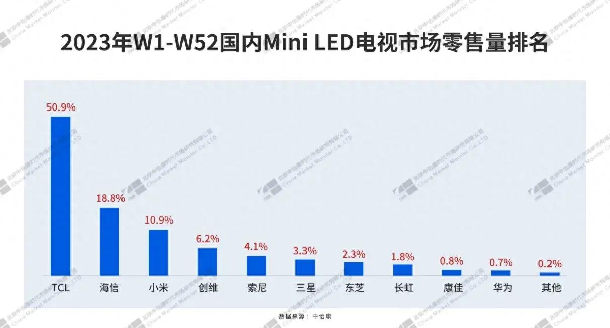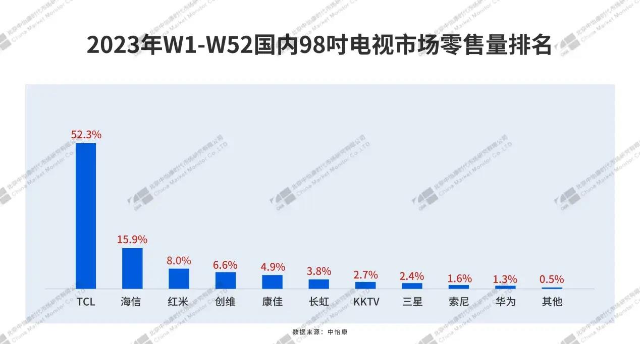 随后,TCL把握先发优势,制定了MiniLED+超大屏策略,快速向市场普及MiniLED电视。得来全不费工夫,2023年,TCL电视霸榜了98吋超大屏电视销量榜单、MiniLED电视销量榜单,深受消费者欢迎。