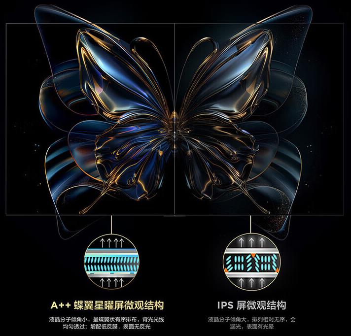 值得一提的是,TCL的高端电视常采用自家华星光电生产的A++蝶翼星曜屏,这块高端VA软屏不仅控光能力强,原生对比度高达7000:1,远超一般IPS屏,还配备了低反膜技术,有效提升了抗环境光干扰的能力,无论环境光线如何变化,都能保持画面的清晰与通透。