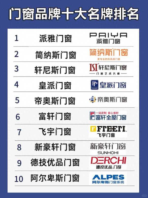 1.派雅门窗。作为门窗行业的领军品牌,派雅以其卓越的品质和创新的设计赢得了广大消费者的青睐。其产品不仅外观精美,而且耐用性极高,为家居生活带来了安全与舒适。