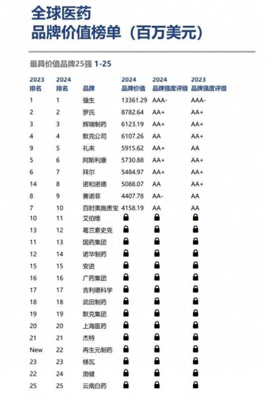 据悉,整体来看,上榜的国药集团、上海医药及云南白药三家中国医药公司的品牌价值今年有不同程度的回落。在这种情况下,广药集团的品牌价值逆势增涨11.3%,位列入榜的中国医药品牌第2名,全球第16名。此外,今年广药集团首次跻身全球最具价值医疗器械品牌榜单,位列全球第11名。