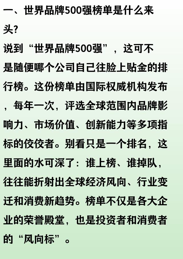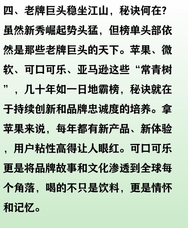 说到世界品牌500强,大家可能第一反应就是苹果、可口可乐这些大牌,但你知道今年有哪些新面孔上榜了吗?还有哪些老品牌依然稳居前列?今天我们就来聊聊2024年最新发布的全球品牌价值500强榜单,看看谁才是真正的世界品牌王者!