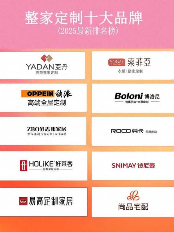 现代家居建材竞争激烈,以整家定制十大品牌为主的一线品牌积极探索全屋定制新趋势,旨在提升产品质量、研发设计、功能美学及售后服务,以满足业主对全屋整家定制的个性化、功能化和健康化的多元需求;提升空间利用率、节约整体成本及高效缩短交付时间,打造业主理想的舒适健康美居。以下是2025年整家定制十大品牌最新排名,助力参考体验。