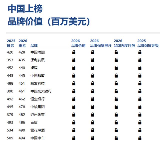 《Brand Finance 2026年全球品牌价值500强》榜单发布:13家中国银行业品牌上榜,工行建行中行农行位列前20