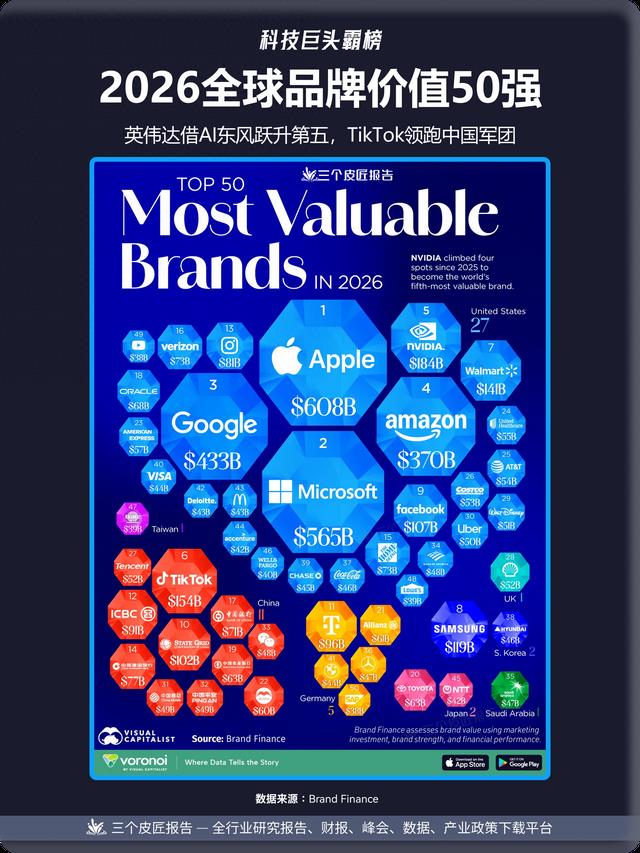 2026全球最具价值品牌榜:英伟达杀进前五,TikTok领跑中国军团